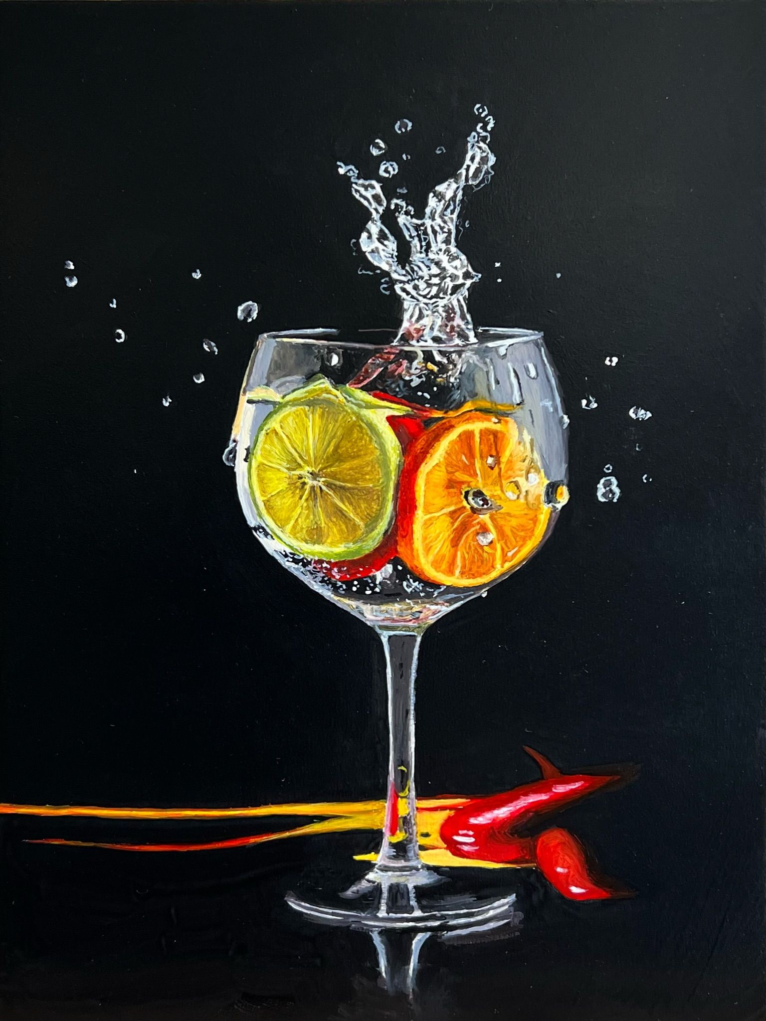 ButtonOils on Smooth Panel 24cm x 18cm - Currently unframed - Option to be framed in a Black frame with Silver inner border